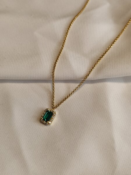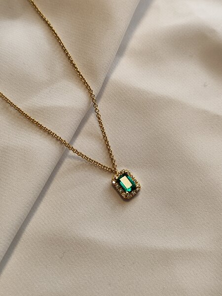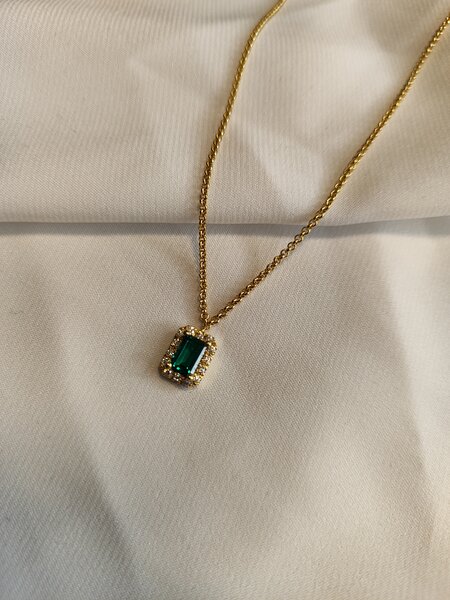 שרשרת תליון היילו יהלומים אבן חן אמרלד